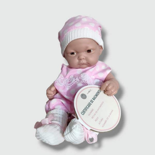 LOVELY BABY con su certificado de nacimiento y bolsita de tela